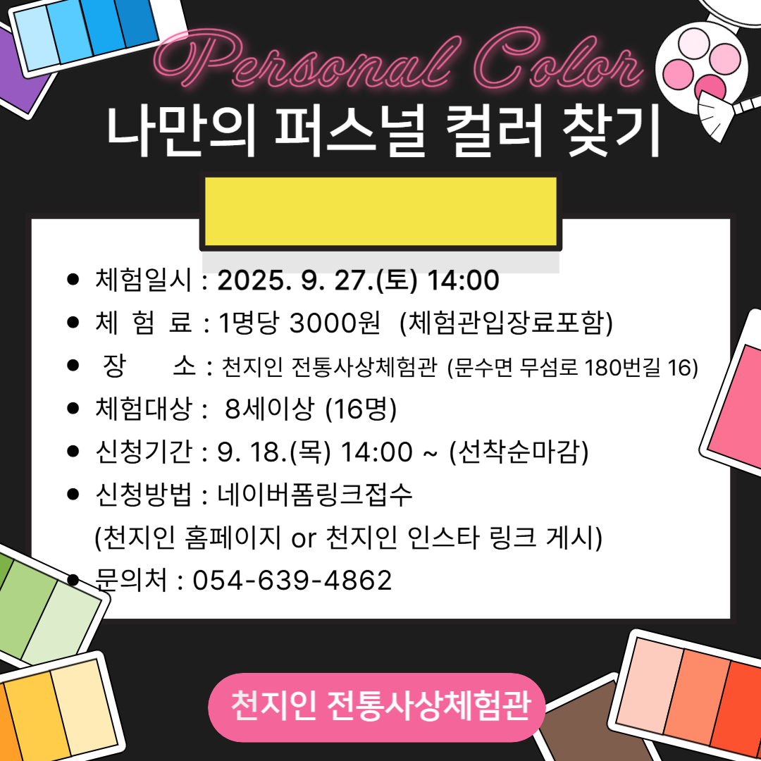 나만의 퍼스널 컬러 찾기 체험프로그램 신청 안내(2025. 9. 27. 토 14:00)