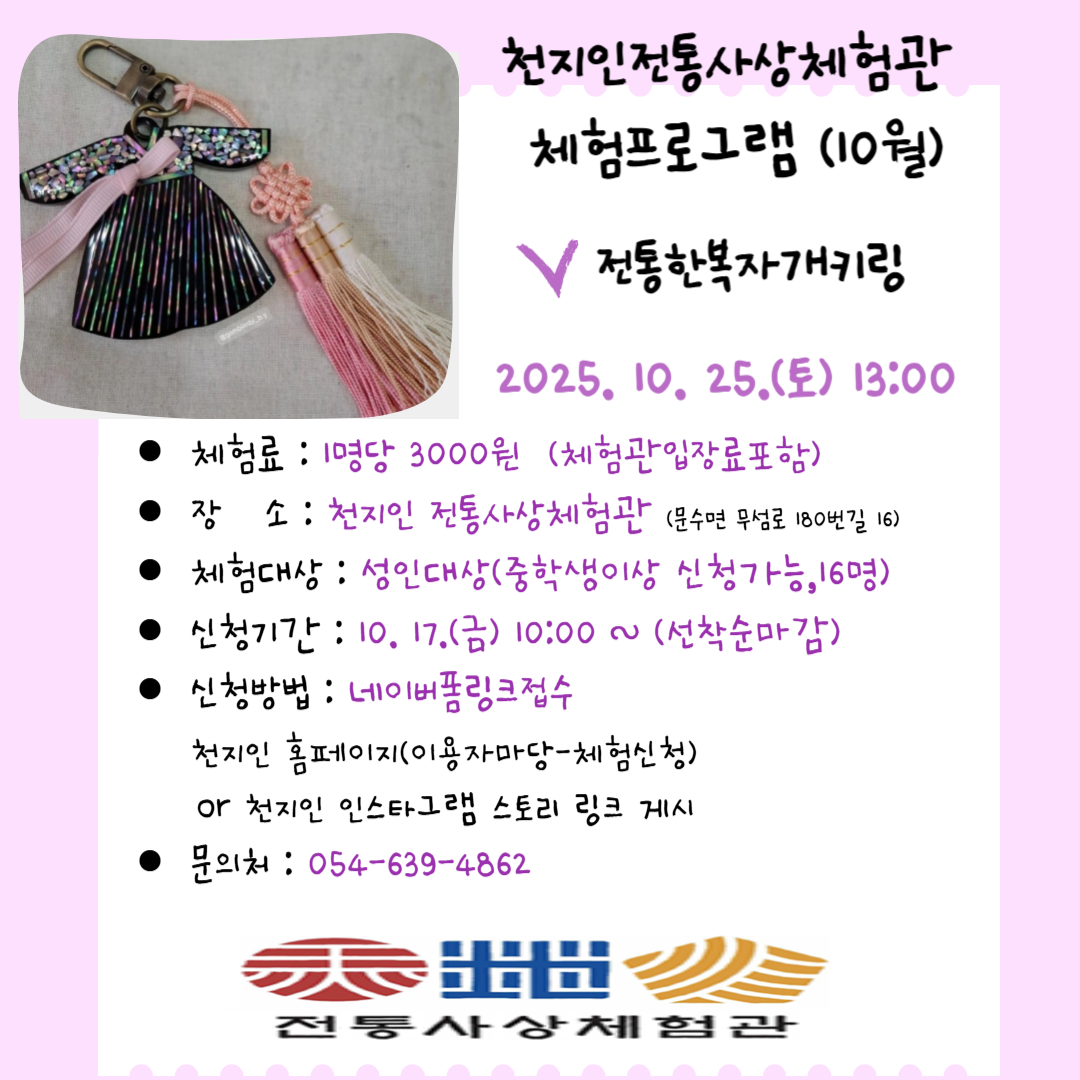 전통한복자개키링만들기 체험(2025. 10. 25. 토 13:00)